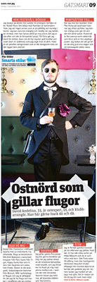 Ni har väl inte missat mina Gatsmart-artiklar i Metro Göteborgs Weekend-bilaga varje fredag? Gatsmart är en kombinerad krog- och modeguide där en ny utstickande person varje vecka får ge sina bästa insidertips och personliga anekdoter om stans uteliv och shopping, samt berätta om sin stil och sina nöjespreferenser i allmänhet. På bilden ovan: David Andelius.