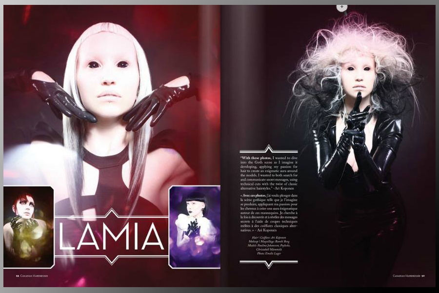 För ett tag sedan publicerades den konstnärliga hårfotosessionen Lamia Collection i Canadian Hairdresser Magazine!